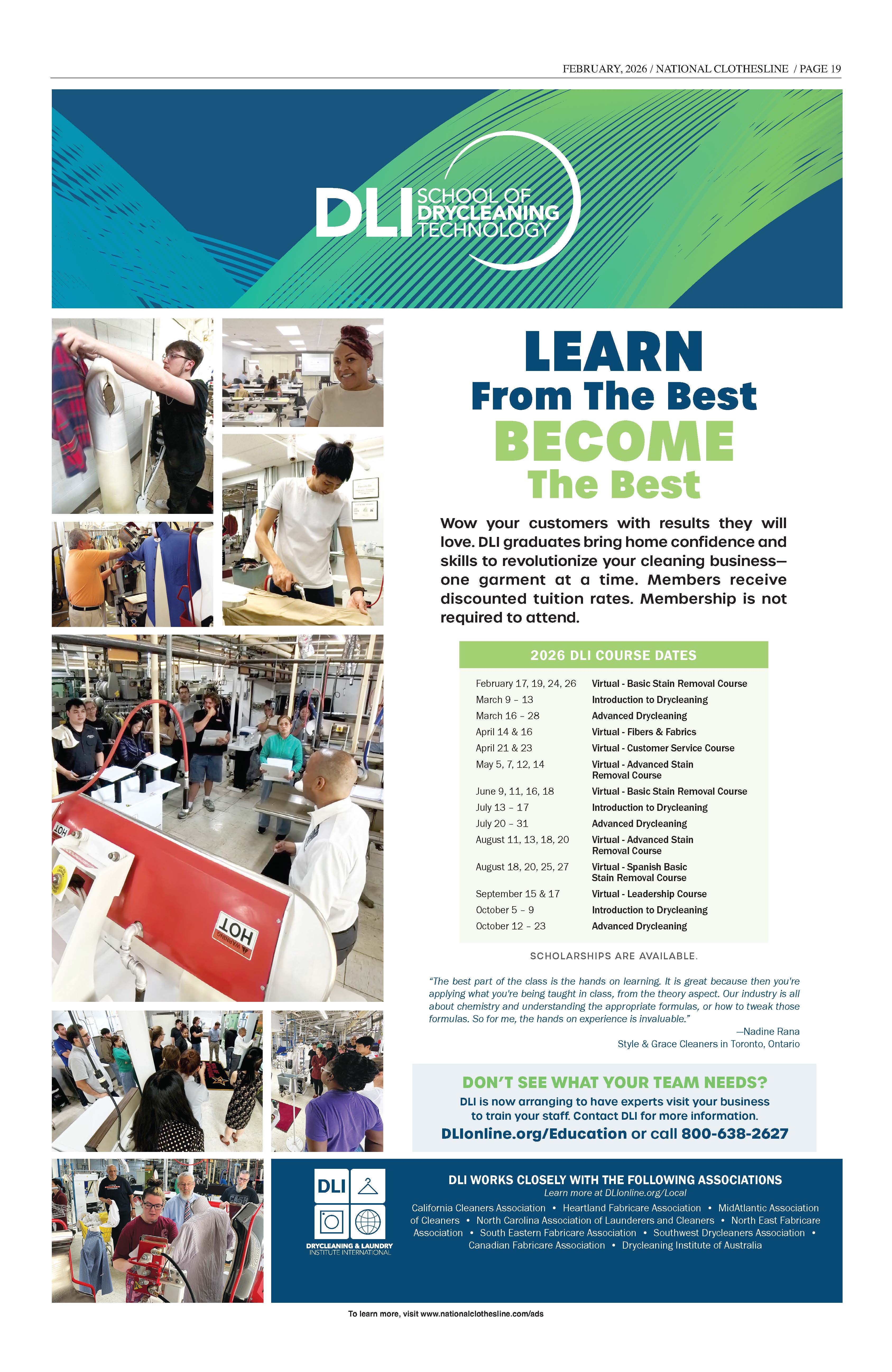 The Drycleaning and Laundry Institute (DLI) are kicking off the new year with a busy slate of educational seminars, including a webinar on “How to Attract Media Attention” and a Virtual Basic Stain Removal course.