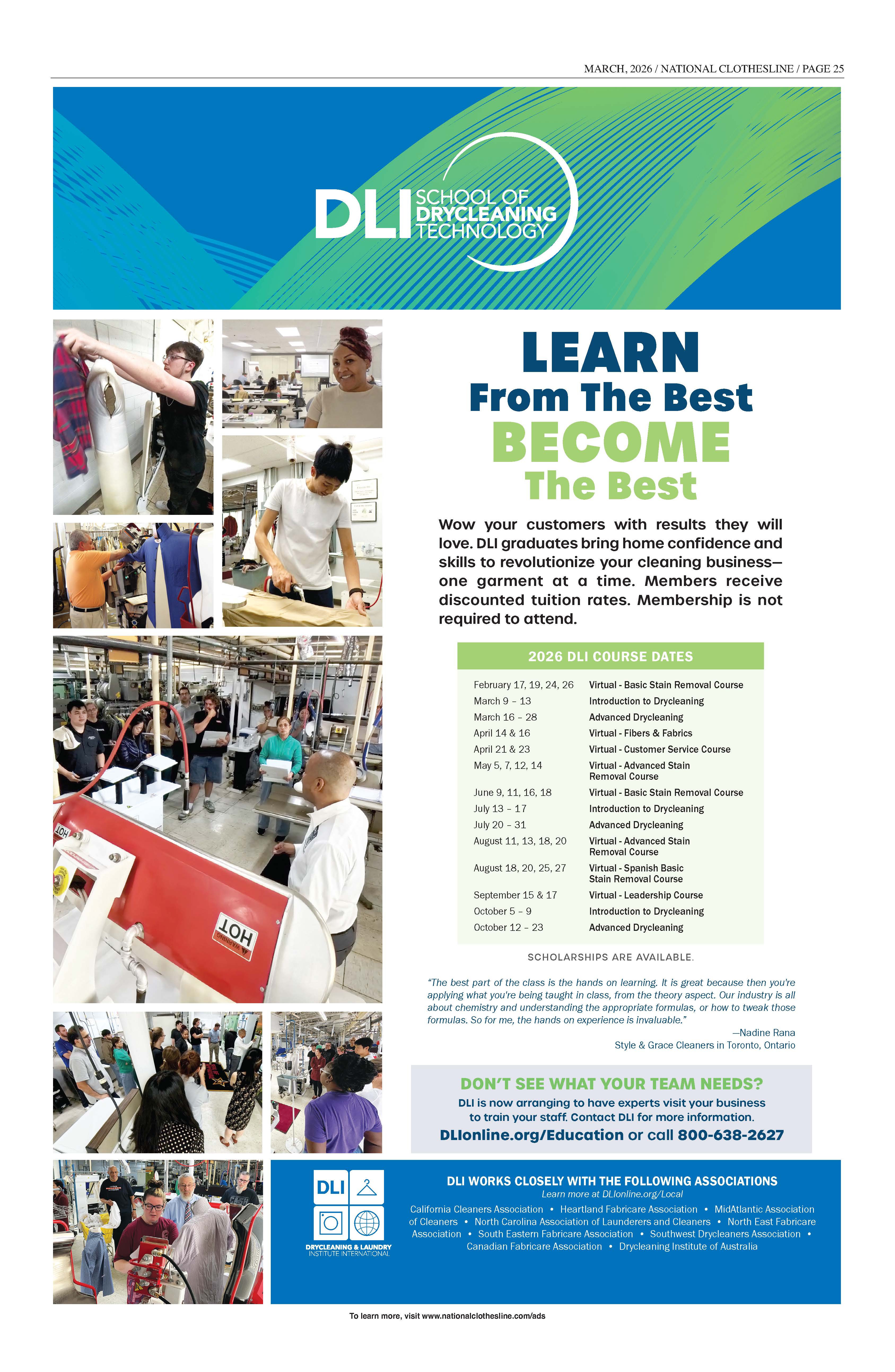 The Drycleaning and Laundry Institute (DLI) and its regional partners will be keeping drycleaners busy this month with a lineup of skill-building programs, expert-led education and valuable networking opportunities.w