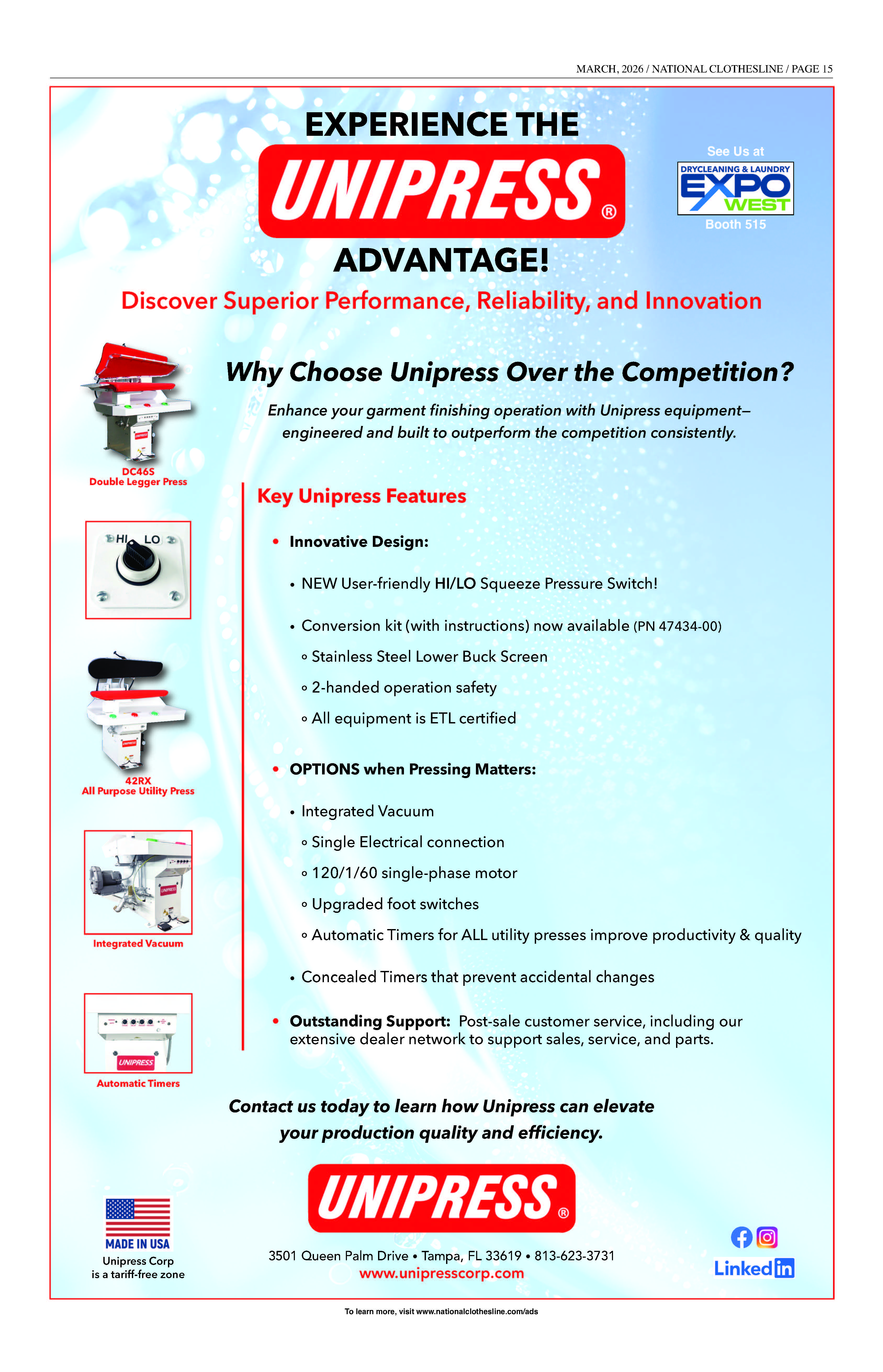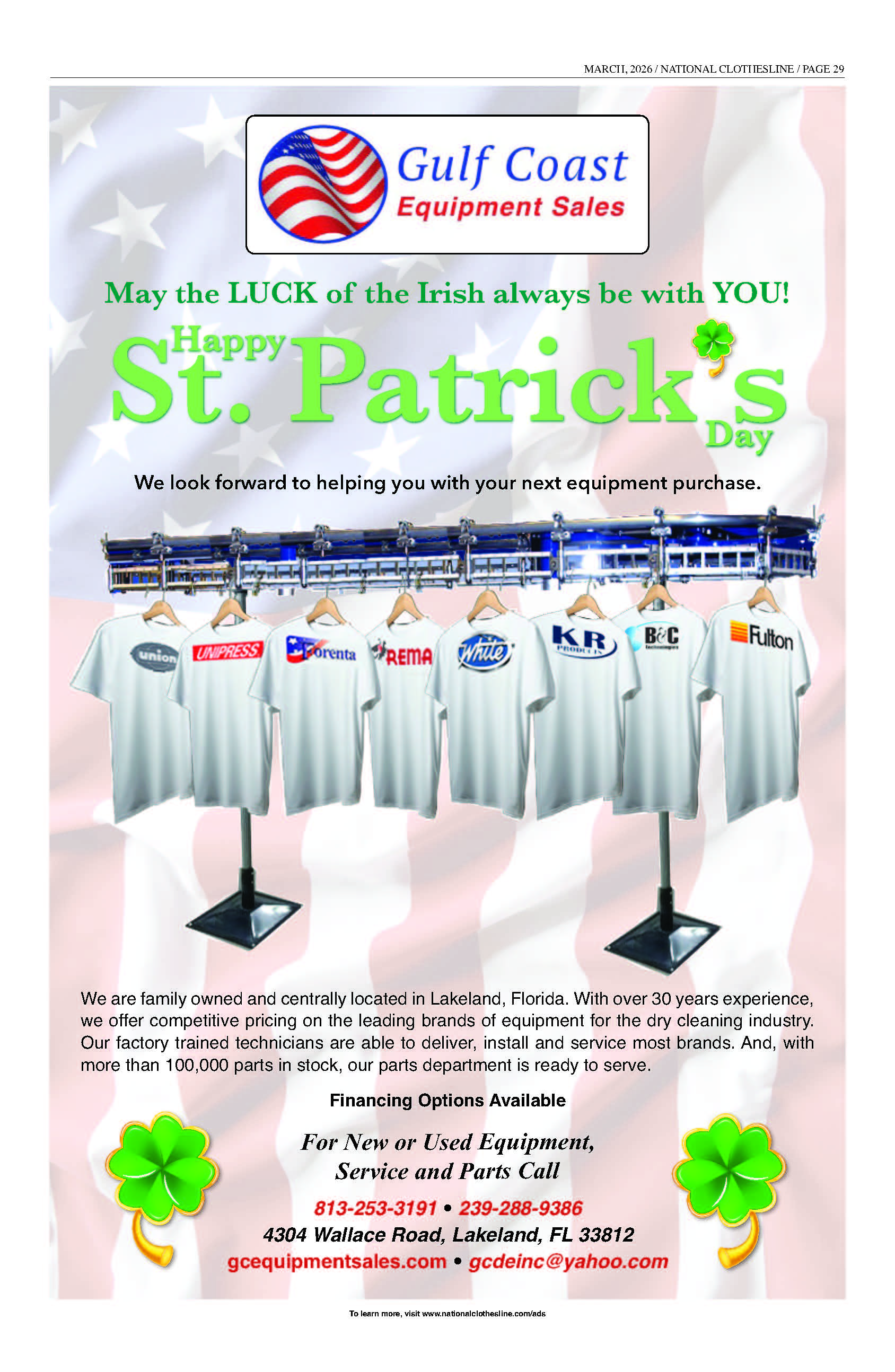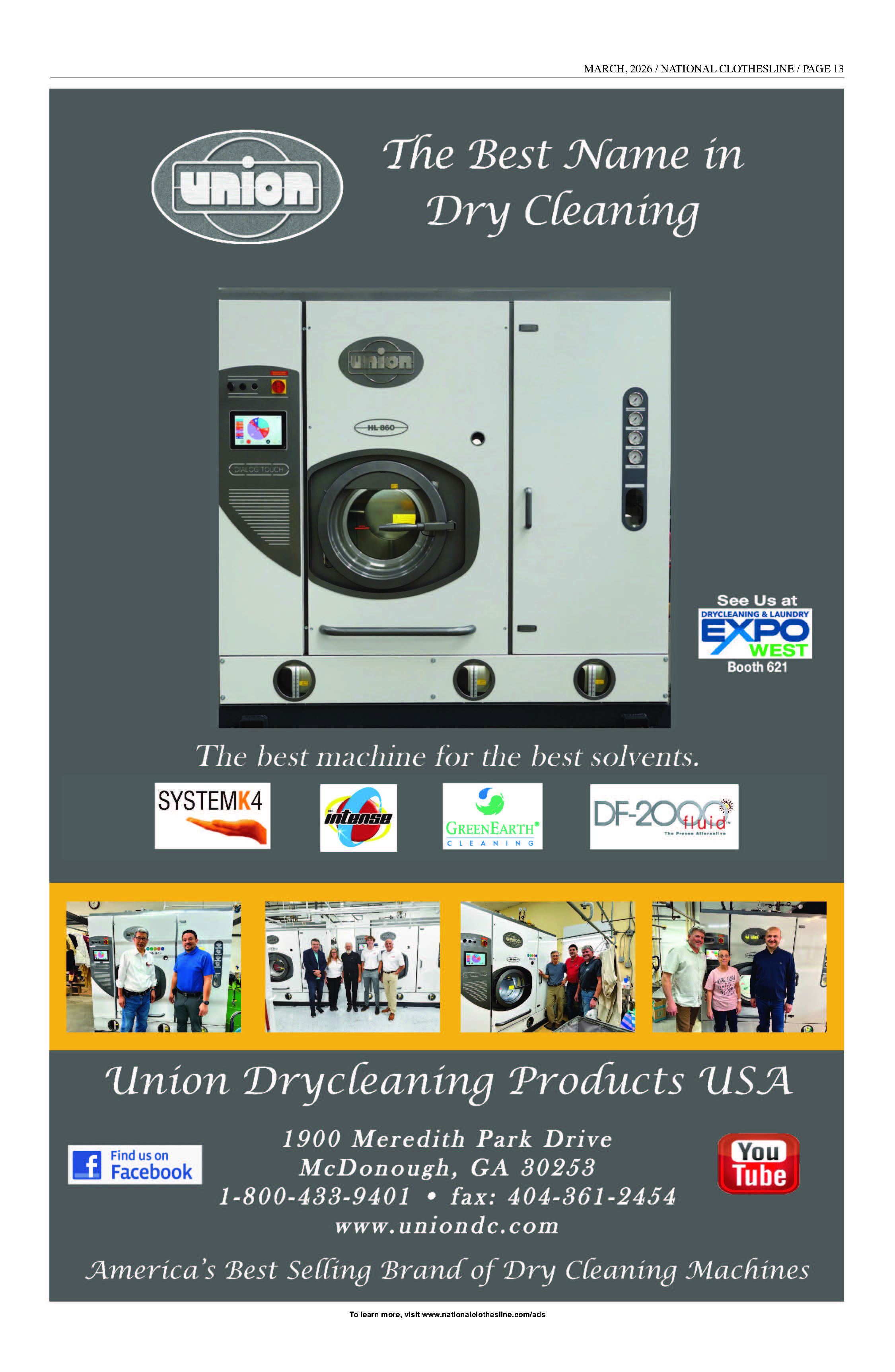 Nearly 15,000 cleaners and their suppliers throughout the United States and around the world read Clothesline