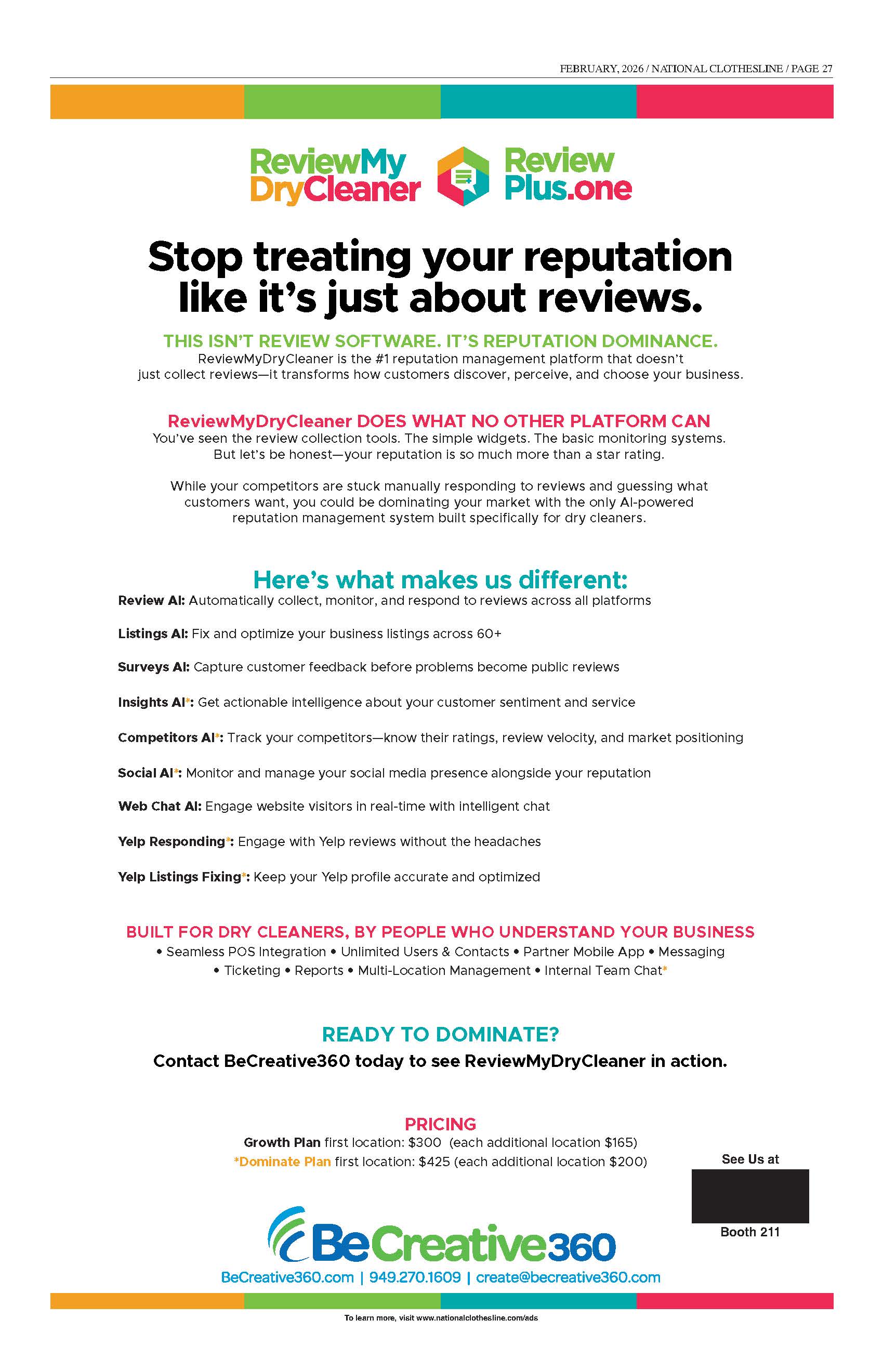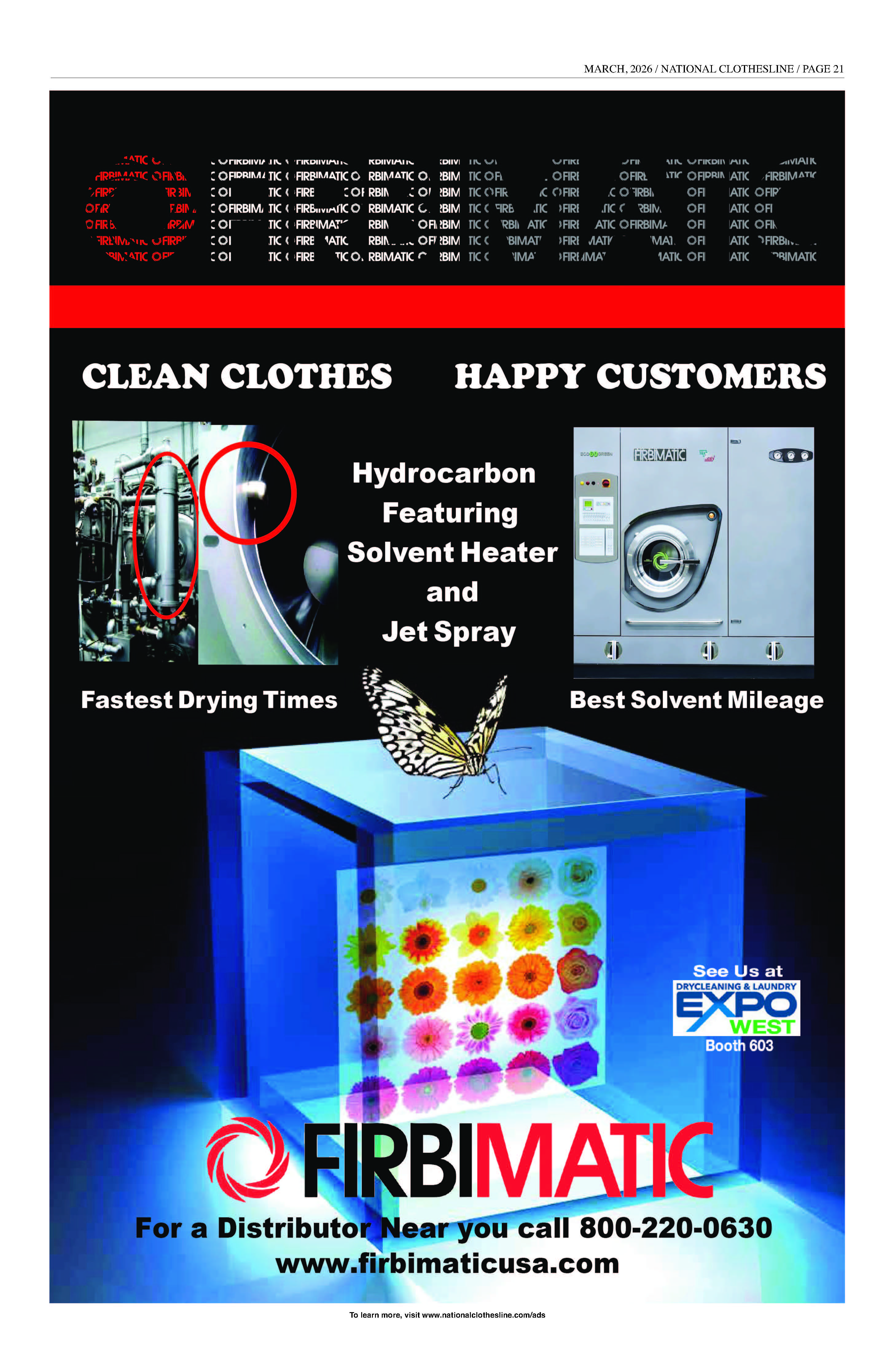Nearly 15,000 cleaners and their suppliers throughout the United States and around the world read Clothesline